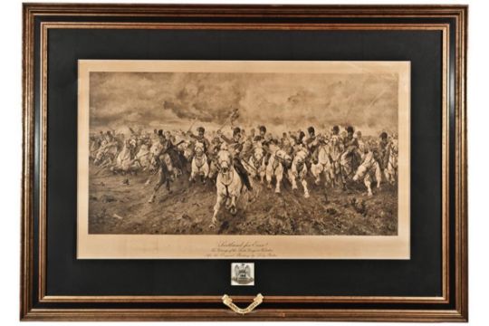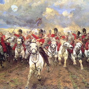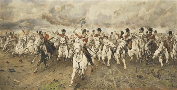 It lives at the leeds art gallery in england. The painting may be purchased as wall art, home decor, apparel, phone cases, greeting cards, and more. Is an 1881 oil painting by lady butler depicting the start of the charge of the royal scots greys, a british cavalry regiment that charged alongside the british heavy cavalry at the battle of waterloo in 1815. Lady butler painted scotland forever! The white horses, the red coated dragoons, the bearskin topped helmets, the big cavalry sabres.